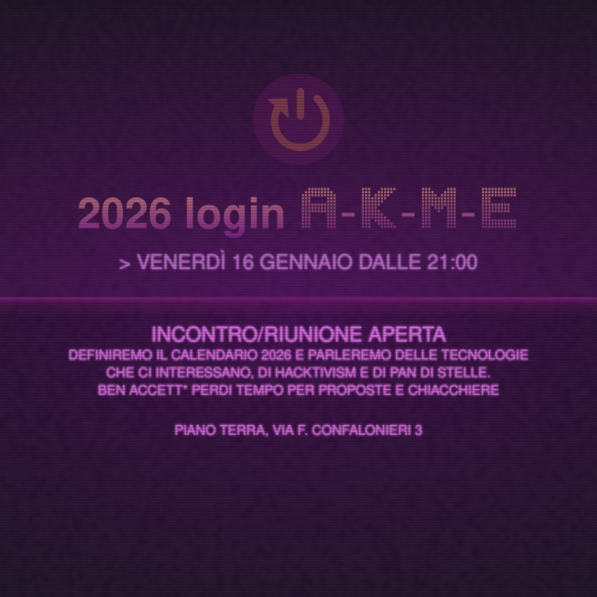 Definiremo il calendario 2026 e parleremo delle tecnologie che ci interessano, di hacktivism e di pan di stelle.