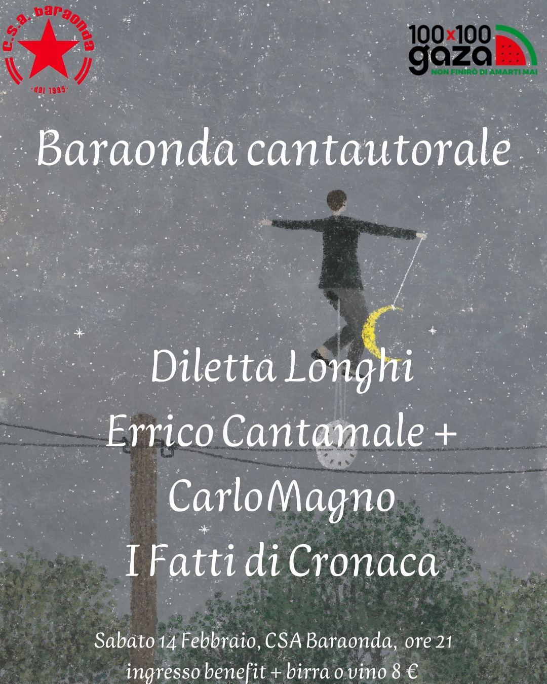 Canteremo sottopalco con Diletta Longhi, in bilico tra jazz e world music; salteremo al grido di 1312 con Errico Cantamale e CarloMagno; infine ci faremo incantare dalle storia cantate dei Fatti di Cronaca.