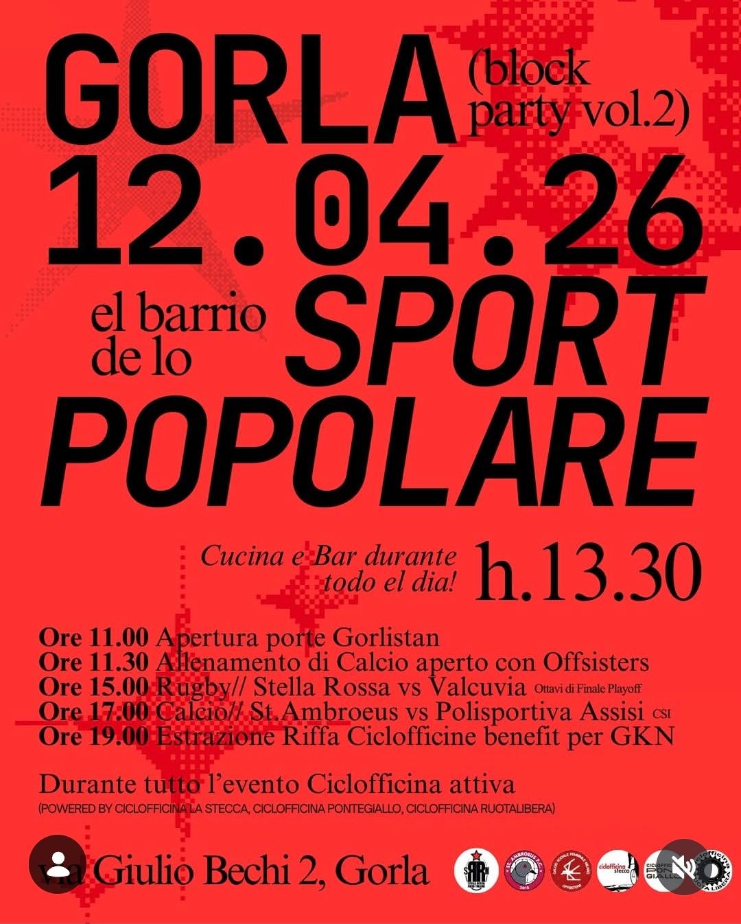 Una giornata di Sport Popolare aperta e coinvolgente dalle 11:00 fino a sera con: