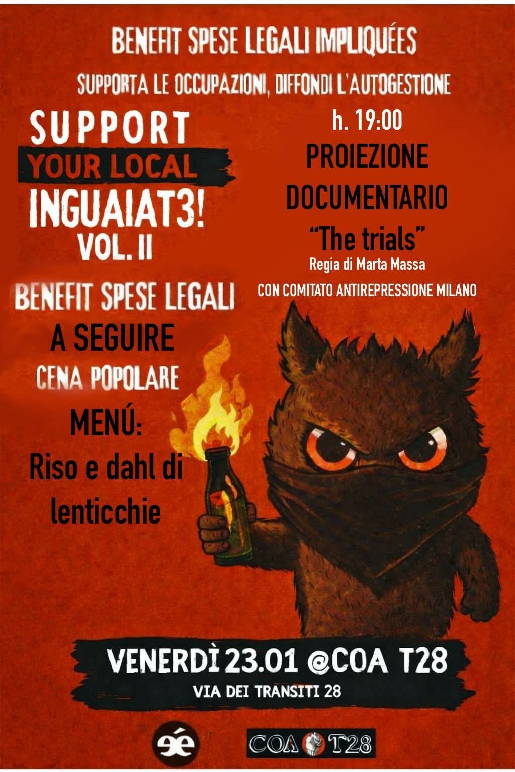 Questo venerdì 23/01 cena benefit per le spese legali di Impliquées; support your local inguaiat3!