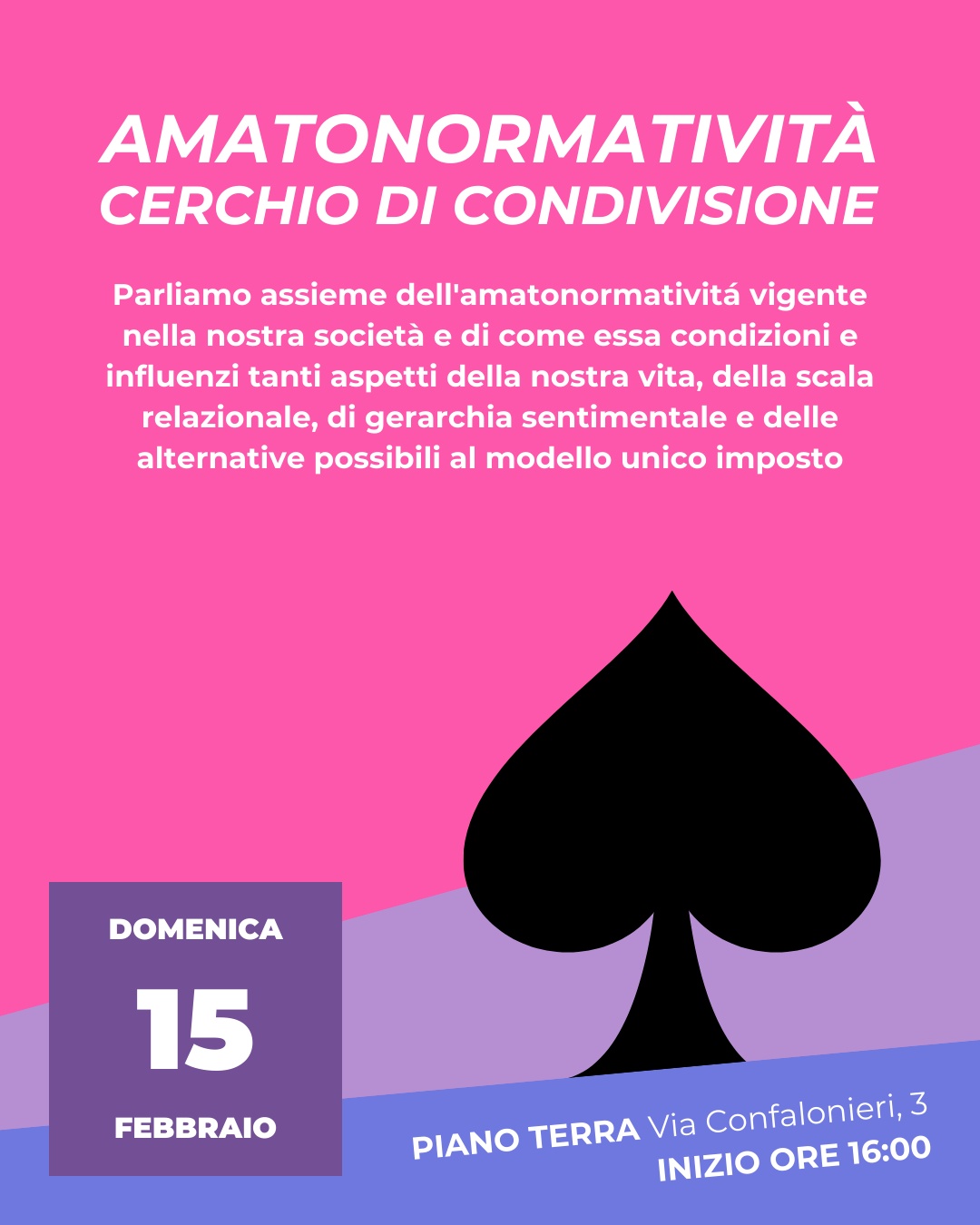 In occasione dell'Aromantic Spectrum Awareness Week abbiamo deciso di organizzare un cerchio di condivisione per parlare assieme dell'amatonormativitá vigente nella nostra società e di come essa condizioni e influenzi tanti aspetti della nostra vita.