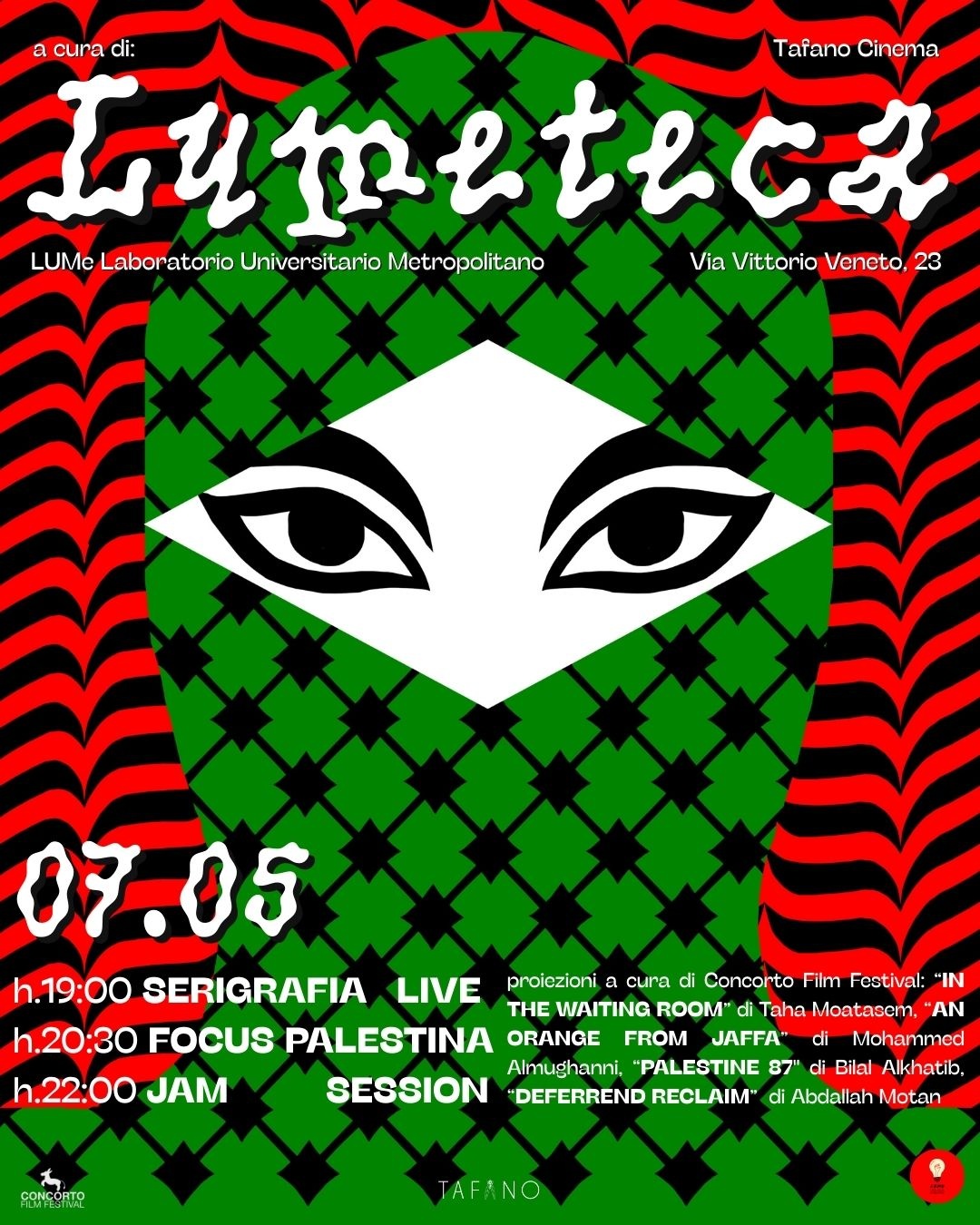 h.20:30 – FOCUS PALESTINA, presentazione e proiezione di cortometraggi palestinesi a cura di @concortofilmfestival:
