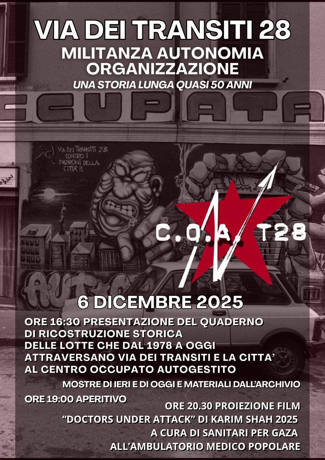 presentazione del quaderno di ricostruzione storica delle lotte che, dal 1978 ad oggi, hanno attraversato e attraversano Via Dei Transiti e la città.