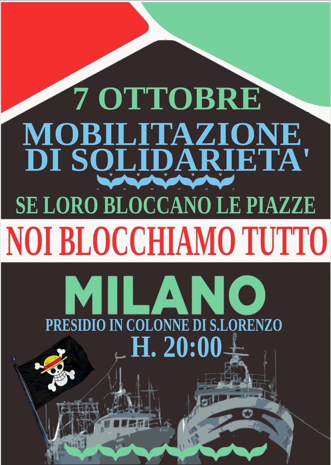 Oggi, martedi 7 ottobre, alle ore 20.00 ci troviamo in presidio alle Colonne di S. Lorenzo per una mobilitazione in solidarietà con le piazze di Bologna e Torino vietate dalla polizia. Se loro bloccano le piazze noi blocchiamo tutto!