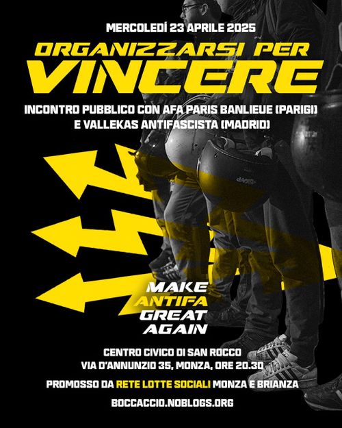 Non facciamoci trovare impreparat3: il mondo sembra cambiare, però la storia è sempre la stessa. È necessario tornare a confrontarci, allargando i nostri orizzonti anche a livello internazionale, capire quali strategie attuare per ricominciare a essere protagonist3 della contemporaneità come soggetti rivoluzionari. Con compagn3 di AFA Paris Banlieue e del quartiere madrileno di Vallekas riflettiamo sulle pratiche dell'oggi e immaginiamo i piani per l'avvenire.