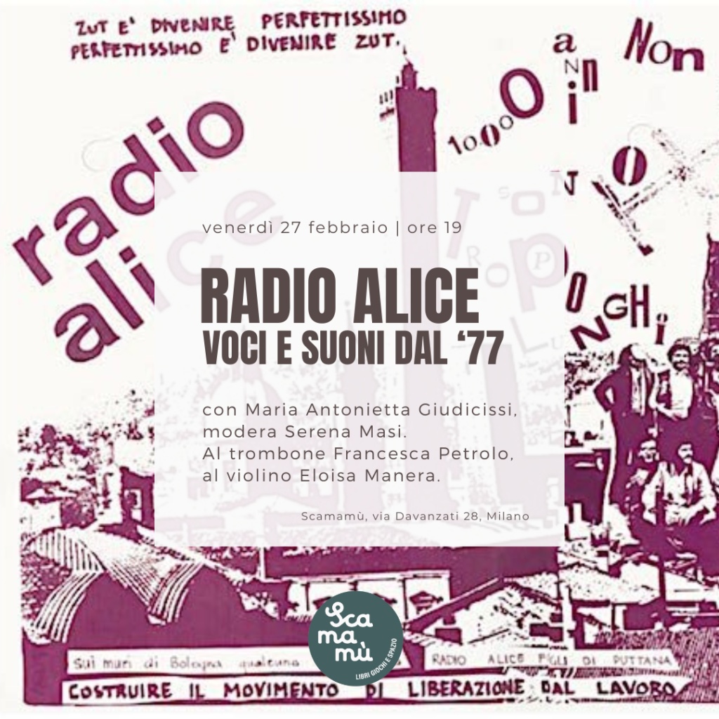 Radio Alice, voci e storie dal ’77, è una serie podcast in sei puntate che racconta la storia della mitica emittente bolognese, inserita nel contesto politico sociale e culturale bolognese e italiano che va dal ’76, anno della sua fondazione, e il ’77 anno della sua chiusura.