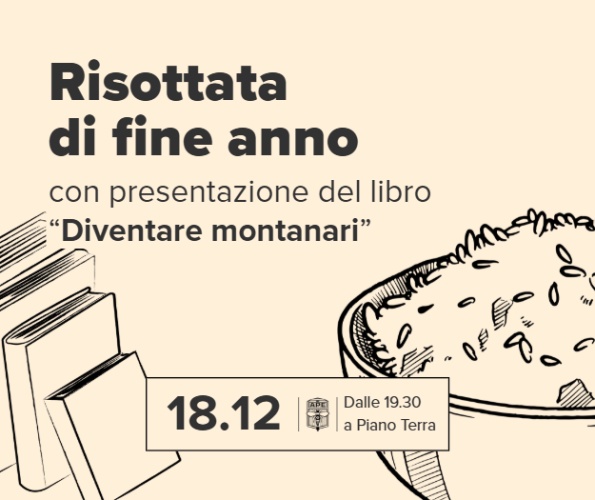 Al termine della presentazione, come da tradizione apeina, ci ritroveremo a tavola per la risottata di fine anno. Noi cuciniamo il risotto, ognuno porta qualcosa da condividere: un piatto, del vino, dolci o quello che preferite per brindare insieme all’anno che sta finendo e immaginare i sentieri che percorreremo nel 2026.