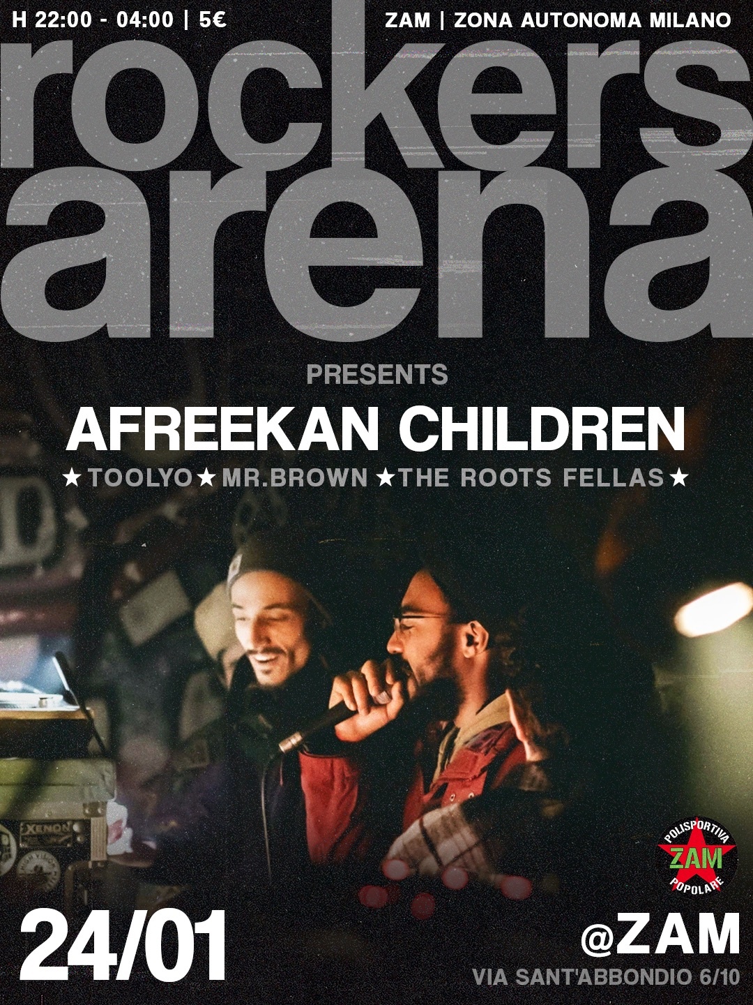 Sabato 24/01 ROCKERS ARENA sarà a @zam_zona.autonoma.milano per la prima volta in versione notturna nella sala delle feste