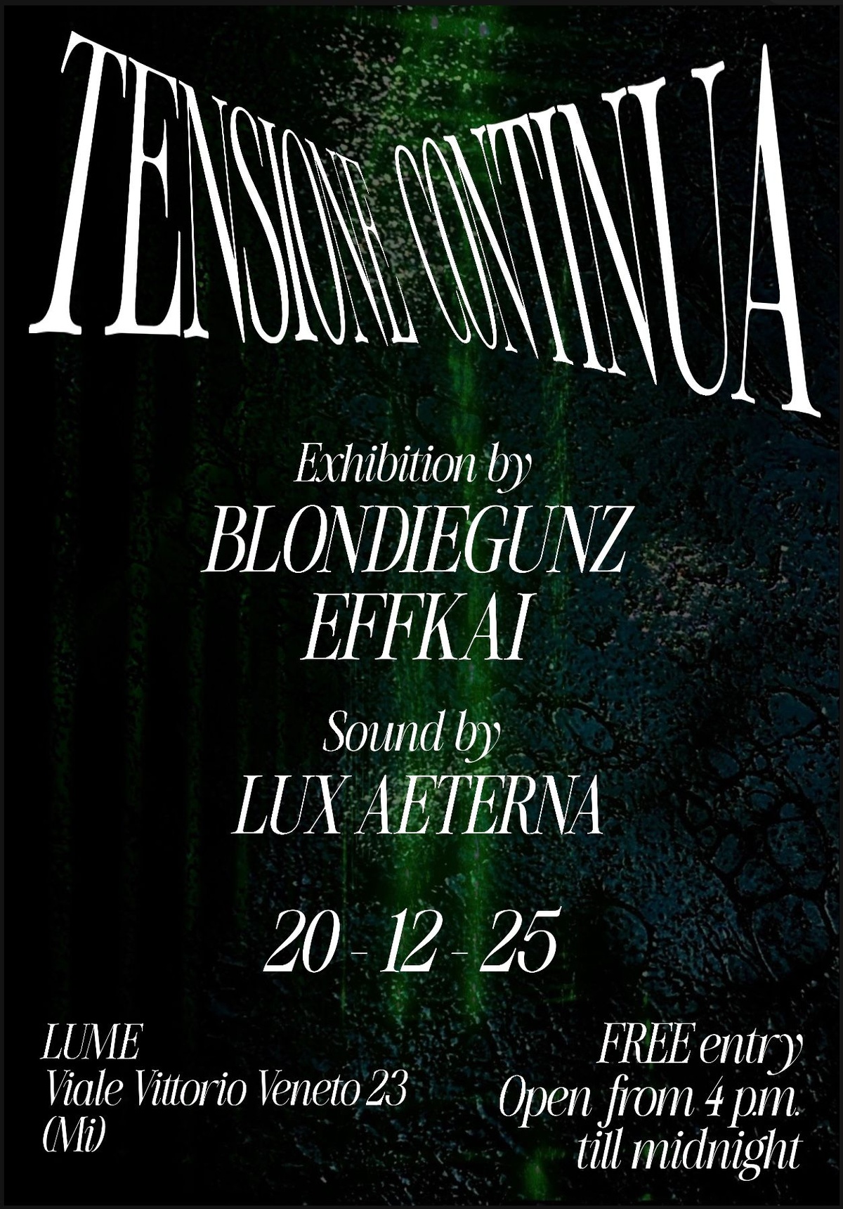 Esposizioni di @effkai.project e @blondiegunz per la mostra d'arte "TENSIONE CONTINUA", sound curato da @luxaeterna__