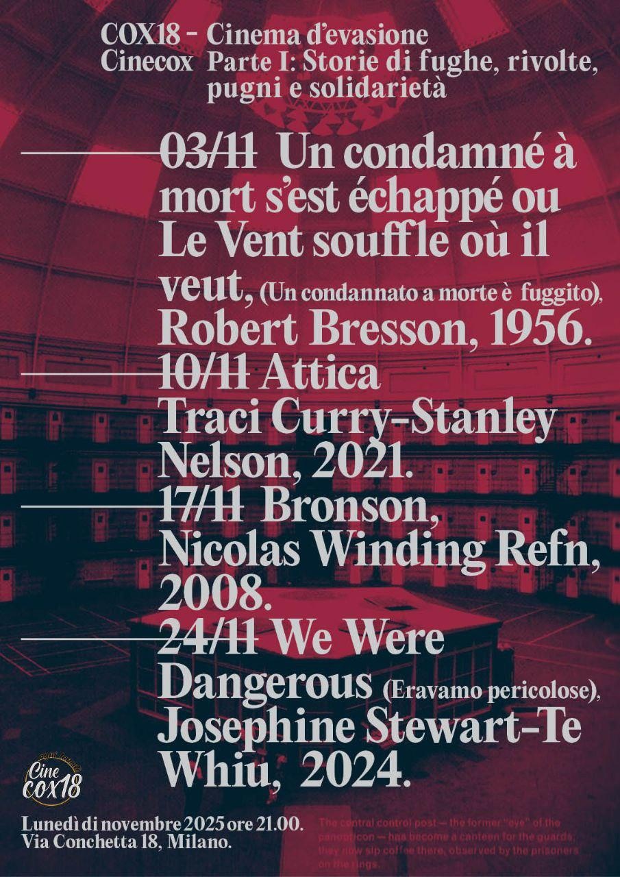cinecox: lunedì di novembre 2025 ore 21.00 a cox18, via conchetta 18 Milano